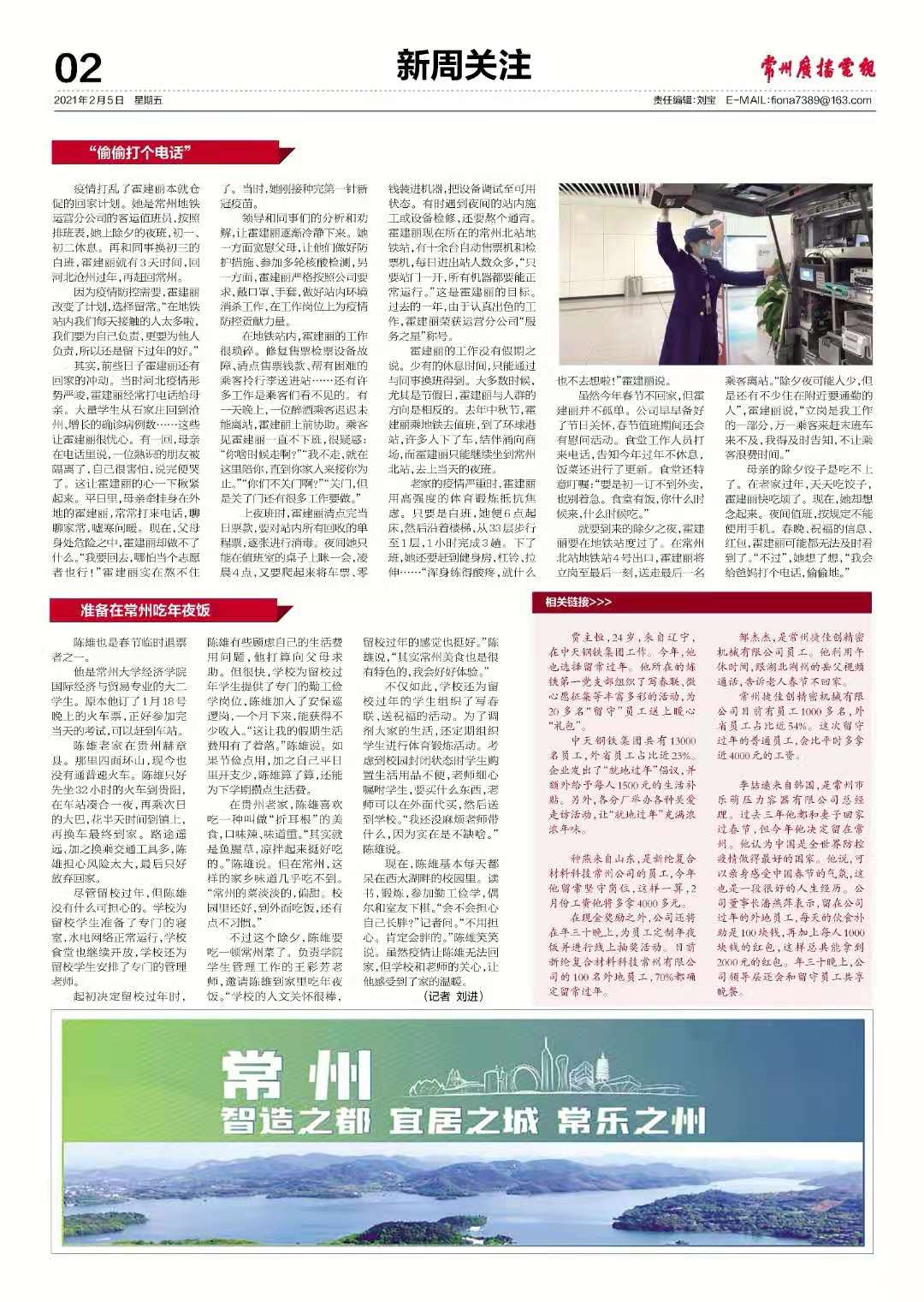 扬子晚报:常州大学为留常过年学生准备新年大礼包
