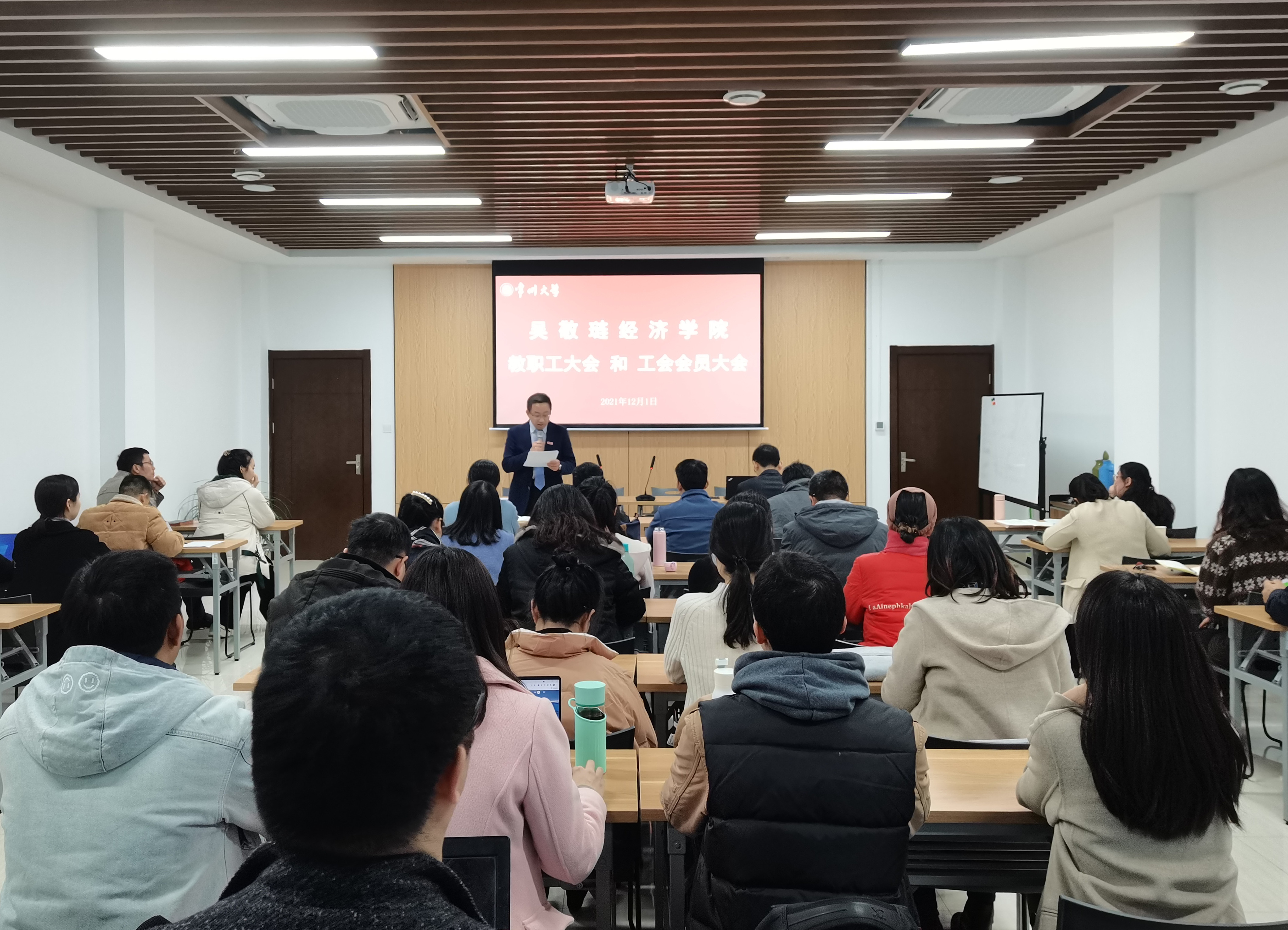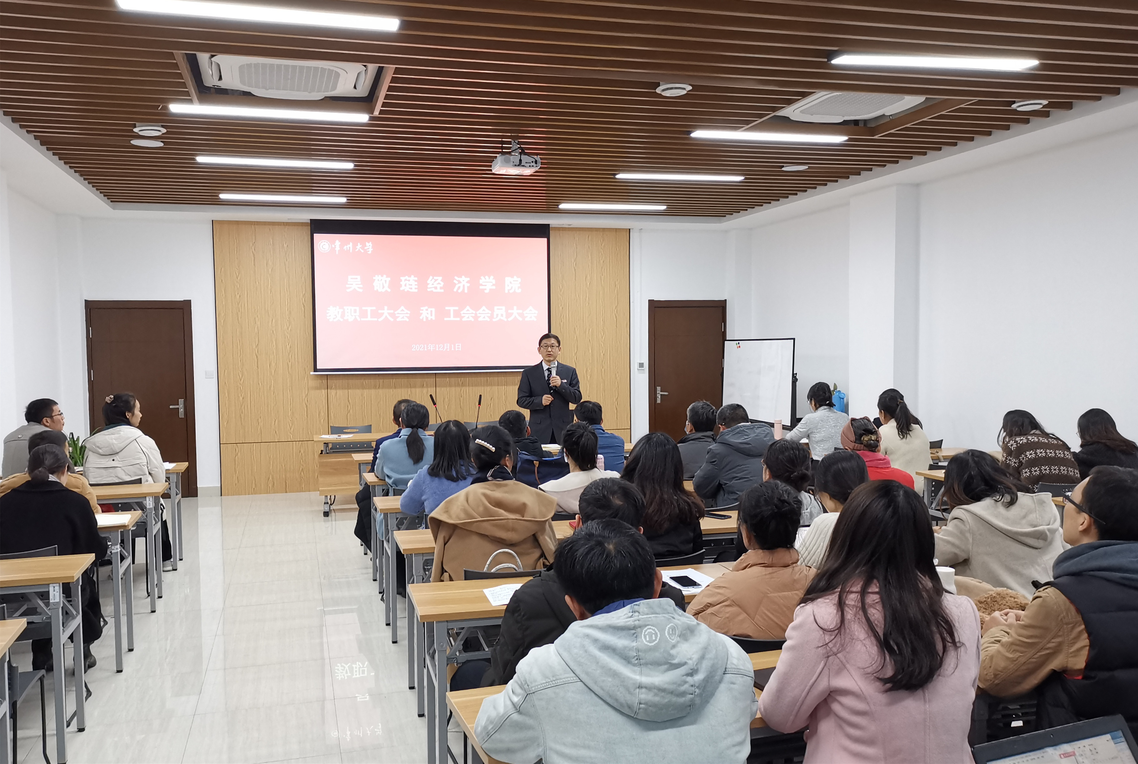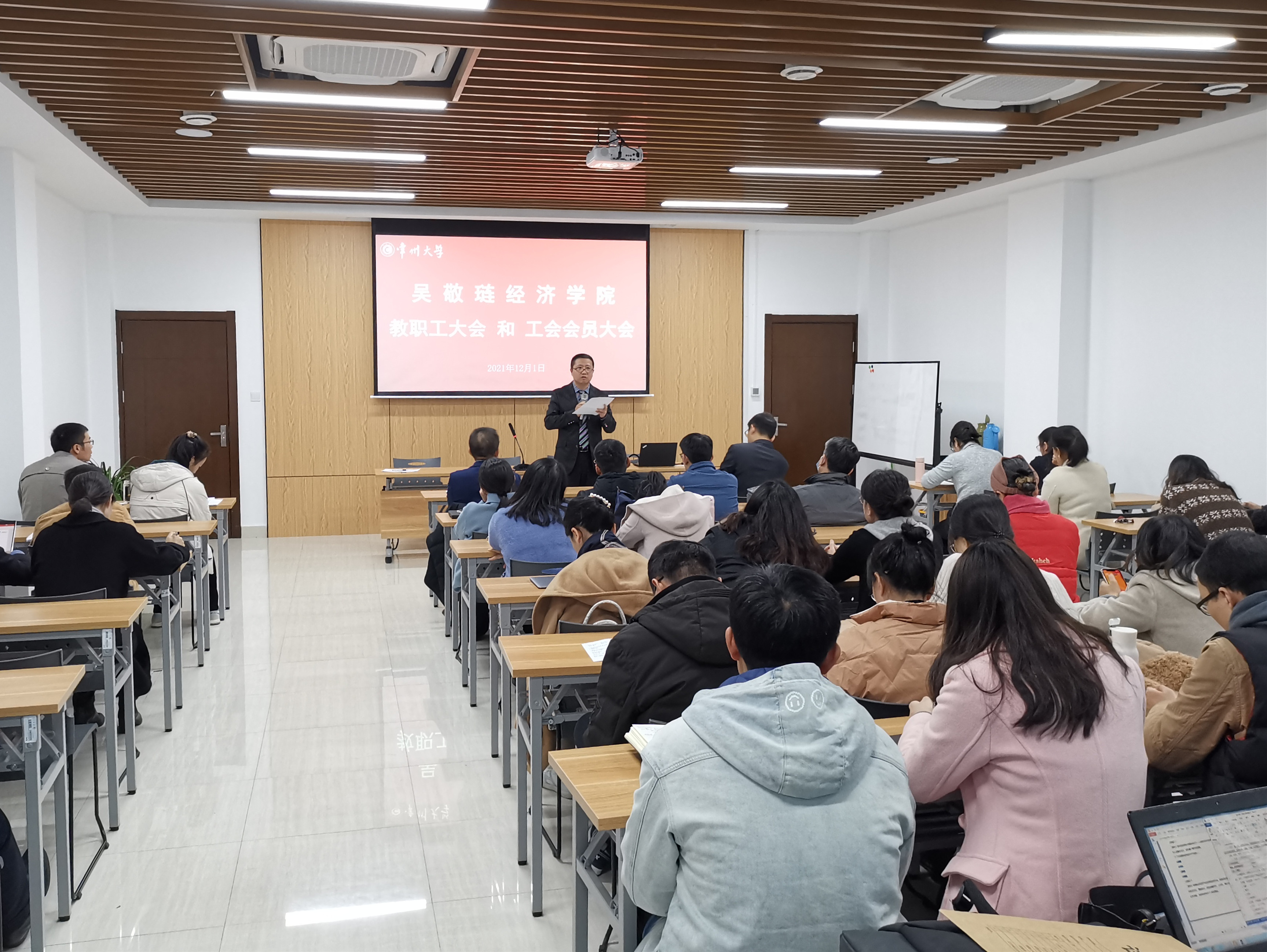 2021年12月1日下午,吴敬琏经济学院在西太湖校区立言楼403会议室召开了第一届全体教职工和工会会员大会。