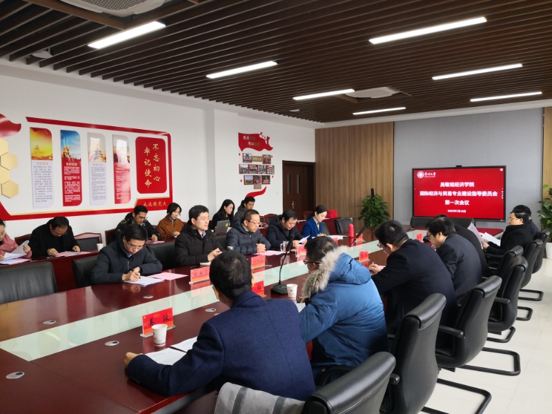 2022年1月13日上午,常州大学吴敬琏经济学院国际经济与贸易专业建设指导委员会第一次会议在常州大学(西太湖校区)立言楼427会议室成功召开。会议邀请了常州市台办徐栋副主任、常州市武进区商务局王勇局长、常州市综合保税区管理局马二中副局长、河海大学低碳经济研究所田泽所长、常州汇塑勤业进出口有限公司陈祥总经理、常州沃可瑞电子商务有限公司姜波总经理、江苏南洋木业有限公司程文俊经理。学院姜国刚院长、任保全副院长、国贸专业系主任管志杰教授,系副主任陈丽副教授和王美昌博士,以及国贸专业骨干教师参加了会议。会议由任保全副院长主持。