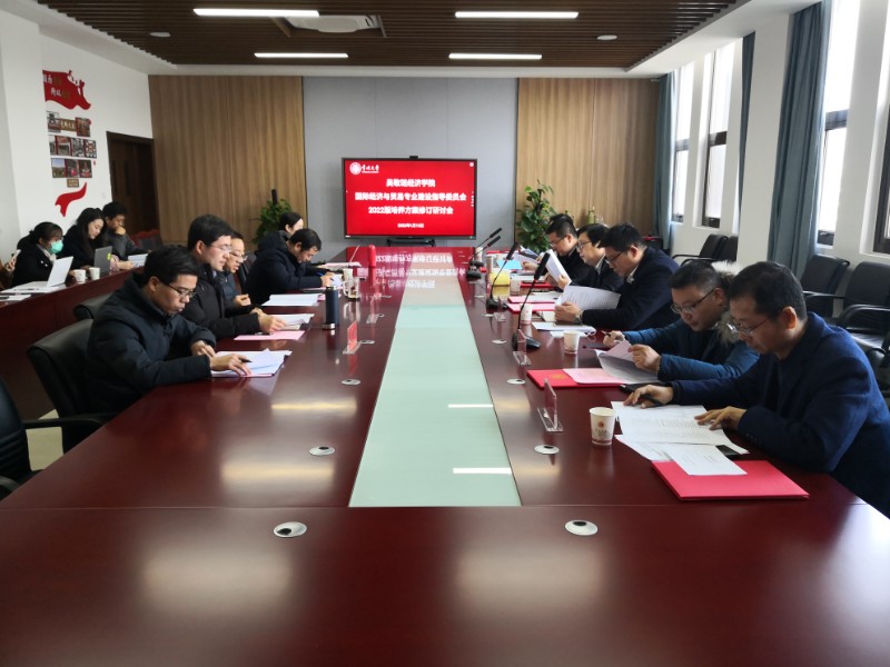 2022年1月13日上午,常州大学吴敬琏经济学院国际经济与贸易专业建设指导委员会成立大会结束后。在常州大学(西太湖校区)立言楼427会议室,国贸专业建设指导委员会召开国贸专业2022版培养方案修订研讨会。建设指导委员会委员常州市台办徐栋副主任、常州市武进区商务局王勇局长、常州市综合保税区管理局马二中副局长、河海大学低碳经济研究所田泽所长、常州汇塑勤业进出口有限公司陈祥总经理、常州沃可瑞电子商务有限公司姜波总经理、江苏南洋木业有限公司程文俊经理,吴敬琏经济学院姜国刚院长、任保全副院长、国贸专业系主任管志杰教授,系副主任陈丽副教授和王美昌博士,以及国贸专业骨干教师参加了此次会议。会议由管志杰教授主持。