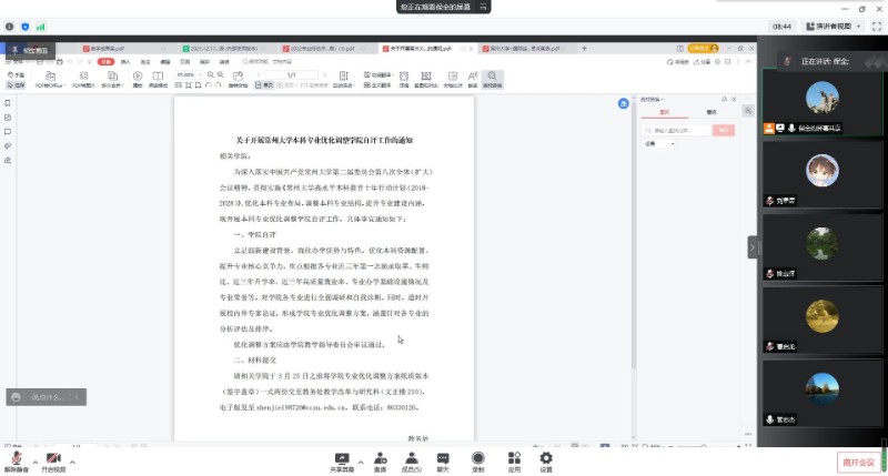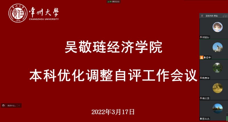 2022年3月17日,吴敬琏经济学院通过线上方式召开本科优化调整自评工作会议。会议由任保全副院长主持,国贸专业系主任管志杰、金融学专业系主任曹启龙、金融工程专业系主任姚惠泽和教学秘书刘星辰出席会议。