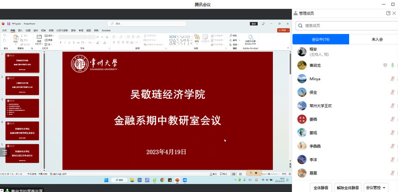 4月19日,吴敬琏经济学院金融教研室在腾讯会议开展了线上期中教学研讨会。会议围绕期中教学检查、金融学专业认证、金融学教学大纲修订等内容展开讨论。