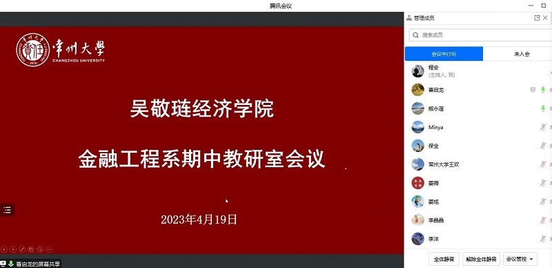 4月19日,金融工程专业通过线上会议的形式召开了期中教学研讨会。张普副院长、任保全副院长、金融工程专业负责人和专业全体教师参加了本次研讨会。