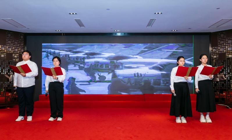 接下来,我院与商学院领导共同为“红色教育基地”揭牌,为深化红色教育搭建新平台。军休干部路浩还向我院团学干部赠送了书法作品《红色文化薪火传经世济民谱新篇》,勉励学生坚定理想信念,续写英雄篇章。最后,我院新生代表与军休干部、商学院学生深情合唱《我的祖国》,活动在嘹亮的歌声中圆满落幕。