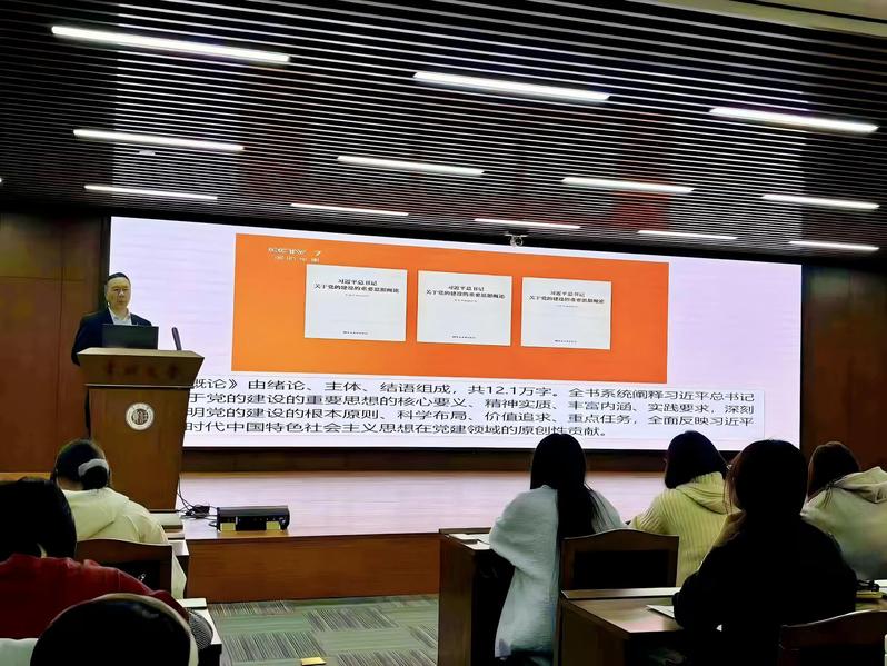 丁恒龙教授围绕习近平总书记关于党的建设的重要思想来展开,内容包含思想的形成背景、科学体系、重大意义和实践要求,深入阐释了思想的内涵和精髓要义。丁教授强调我们要坚持以习近平新时代中国特色社会主义思想为指导,深入学习贯彻习近平总书记关于党的建设的重要思想,确保党在新时代坚持和发展中国特色社会主义的历史进程中始终成为坚强领导核心。本次党课让同学们对习近平总书记关于党的建设的重要思想有了更加系统、深刻的理解,有助于同学们进一步提高自身的政治素养和业务能力。(文/摄 徐欣欣 审核 许丹丹 编辑 徐茜)
