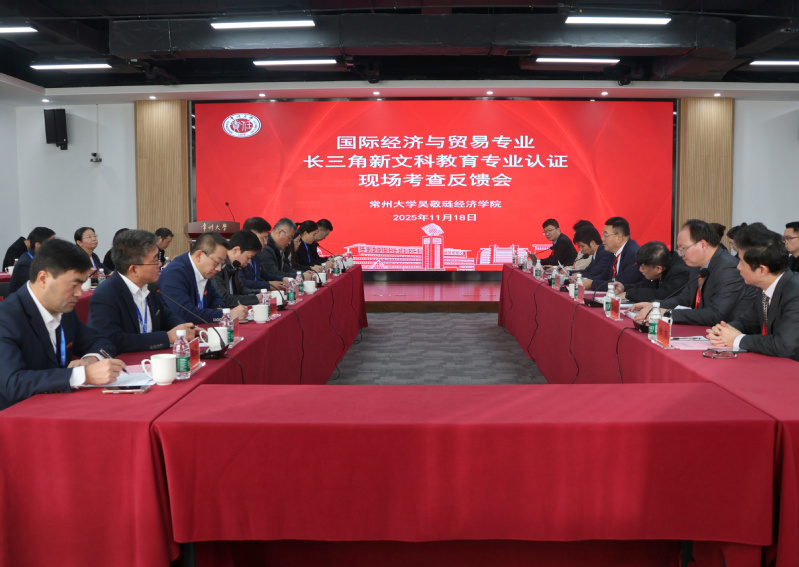 11月18日下午,国际经济与贸易专业长三角新文科专业认证现场考查意见反馈会在常州大学西太湖校区立言楼458多功能厅举行。项义军组长主持意见反馈会。校人事处、教务处、质量管理与评估中心、学生工作处等相关职能部门负责人,吴敬琏经济学院党政领导班子全体成员,国际经济与贸易专业全体教师以及学院部分教辅人员参加反馈会。项义军组长代表专家组向学校和专业反馈了现场考查情况,专家组成员就个人考查情况进行了补充反馈。李忠玉代表学校感谢专家组的辛勤工作及提出的宝贵意见,并表示学校将按照专家组提出的整改意见做好改进工作,以高度的责任感和使命感践行人才培养,提升办学水平和办学质量。姜国刚表态,将结合专家组意见推进学院建设和专业发展,对专家组深入细致的检查、客观精准的评价、高屋建瓴的宝贵意见表示衷心感谢。