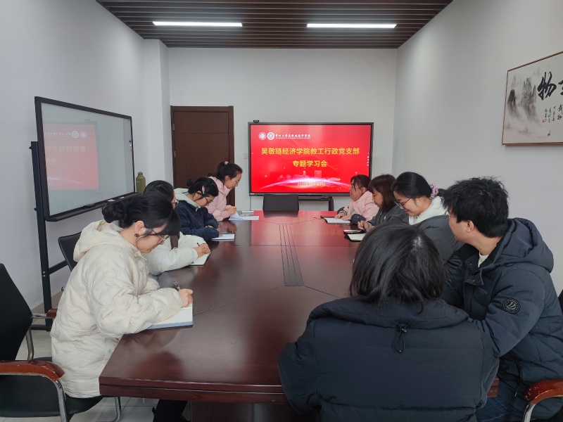 12月17日,吴敬琏经济学院教工行政党支部开展专题学习,会议在立言楼419进行,由支部书记刘星辰同志主持。本次专题学习的内容为:学习习近平总书记在纪念***同志诞辰110周年座谈会上的重要讲话精神。