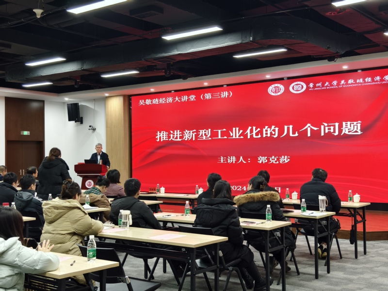 2024年1月8日,“吴敬琏经济大讲堂”第三讲在常州大学西太湖校区立言楼458报告厅举行。学院邀请中国社科院郭克莎教授担任本次讲座的主讲人。常州大学党委副书记黄海燕、吴敬琏经济学院师生代表出席了本次活动。讲座由吴敬琏经济学院院长姜国刚主持。