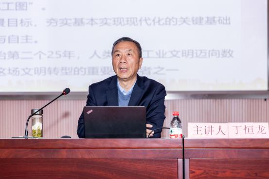 首场讲座以《擘画新蓝图奋进新征程--2026 年全国两会精神解读》为主题, 由常州大学丁恒龙教授主讲。丁教授结合 2026 年全国两会精神,深入剖析当前宏观经济形势,为学员提供了清晰的政策理解和实践指引。