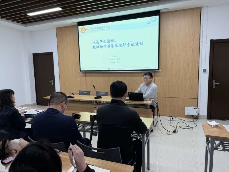 4月15日下午,吴敬琏经济学院教学指导委员会和学院工会在立言楼403会议室,联合举办《吴敬琏经济学院教师工作坊系列培训(第十七期)》。本次讲座的主讲人为吴敬琏经济学院教师吴晓忠,讲座主题为《从迷茫到清晰:教师如何帮学生做好考证规划》。学院全体教师参与讲座。