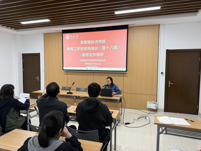 4月29日下午,吴敬琏经济学院教学指导委员会和学院工会在立言楼403会议室,联合举办《吴敬琏经济学院教师工作坊系列培训(第十八期)》。本次培训的主讲人为吴敬琏经济学院院长助理张涵嵋,培训主题为教学文件领学。学院全体教师参与讲座。